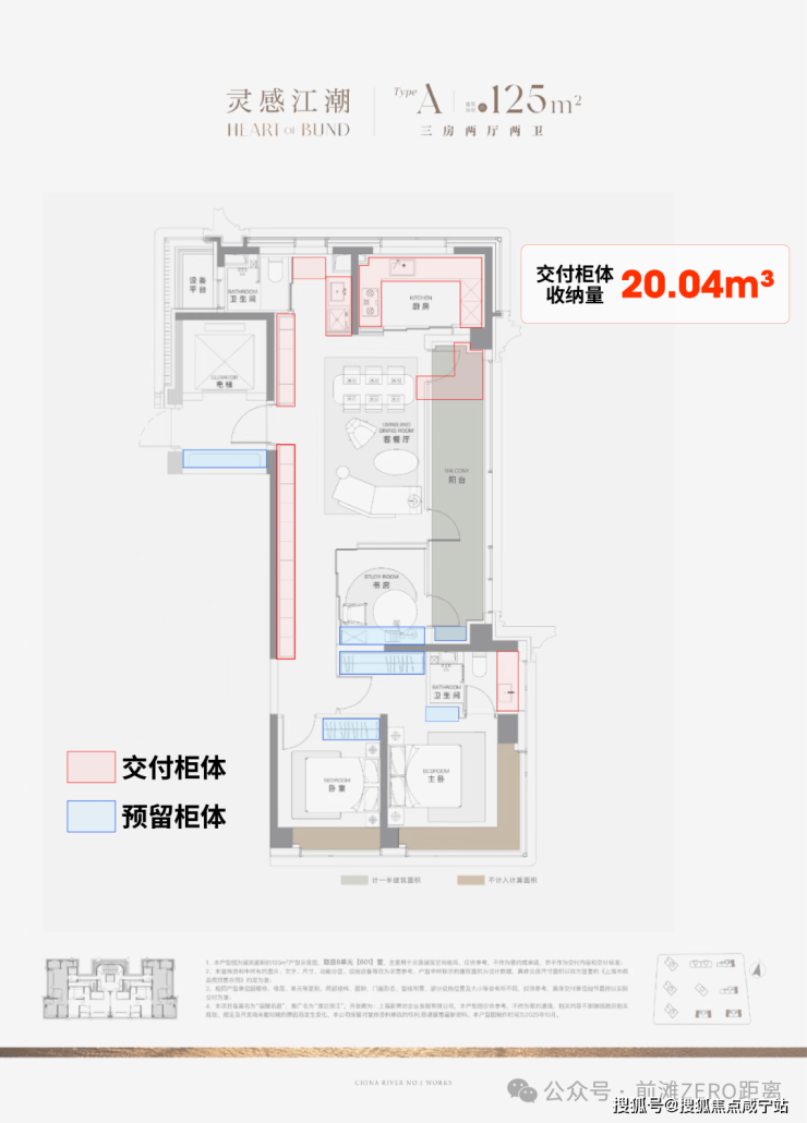 收纳也是项目户型的重点,据沪上好房统计,项目125㎡3房边套户型的整体交付柜子+预留衣柜,收纳空间可以达到约20.04m³(若以28升的行李箱丈量,它能从容收纳200个);中间套户型收纳空间也能达到约16.56m³
