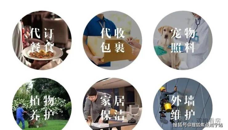 基础物业有和24小时的管家服务,可对接私宴上门服务,机场接送,可空置房管理,宠物带溜带喂,开市客代购,保洁上门收纳,墙体外立面定时清洗等