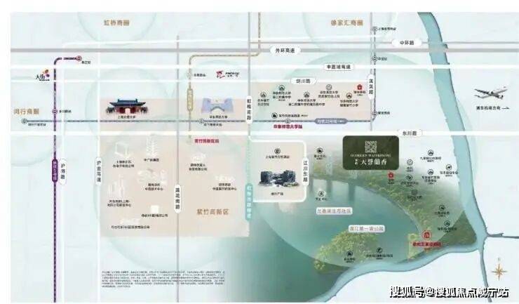 地块所在的紫竹区域占据浦江上游第一湾独特地理位置,核心区域有闵行第一大湖兰香湖,水域面积广阔,岸线绵延,湖光潋滟.