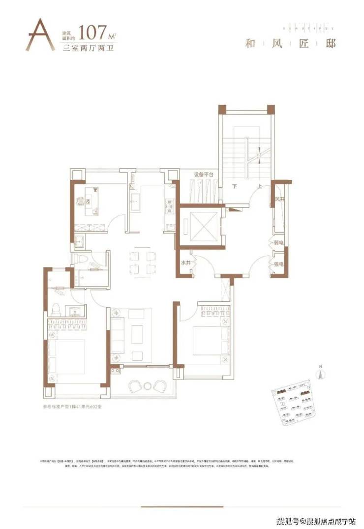 建筑面积约107㎡三房两厅两卫: