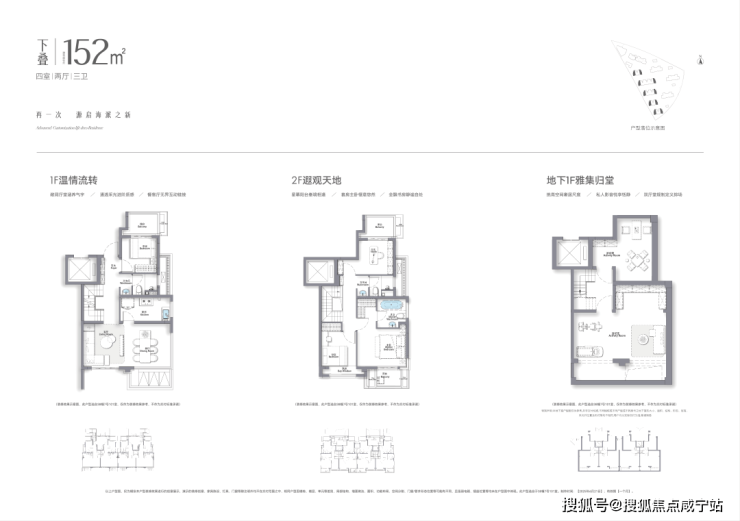 项目另有建面约95㎡ 3房户型及叠加别墅产品,叠加别墅总价约1100万级,户型图如下: