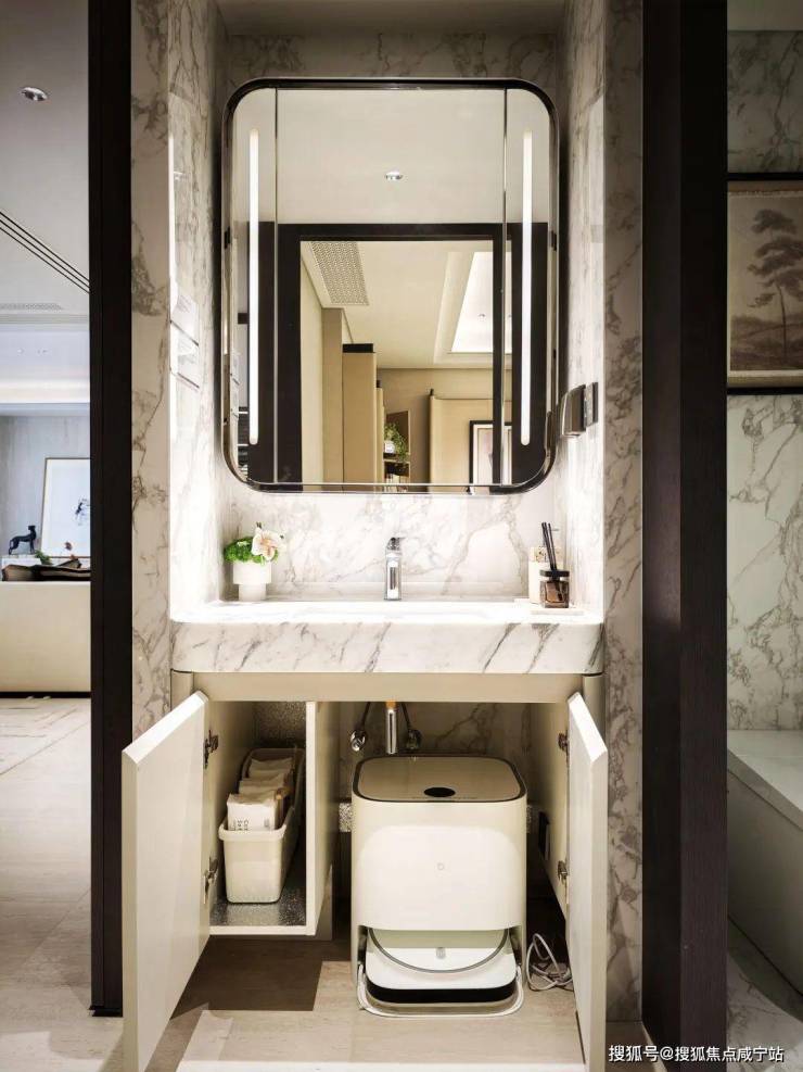 另外在客卫的台盆下方,开发商也特意预留了扫地机器人的“家”,在现在每家每户都需要用到扫地机器人的时代,这样的设置就会让大觉得开发商真的在用心。