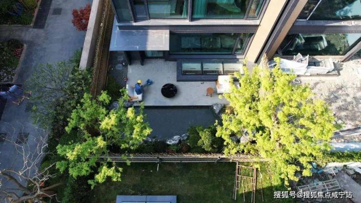 :广富林遗址公园对望,项目园林以“富林十景”为灵感,打造下沉式水幕庭院、黑松景墙等国风场景。