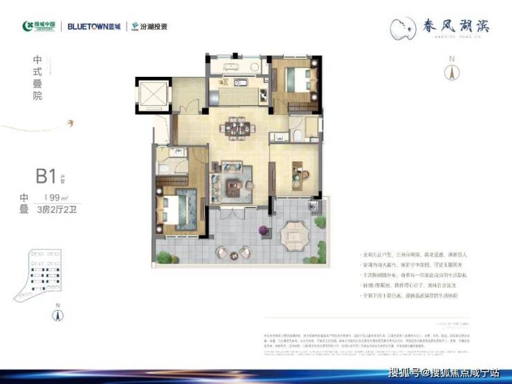 南向双阳台+270°转角飘窗,引湖景入室;