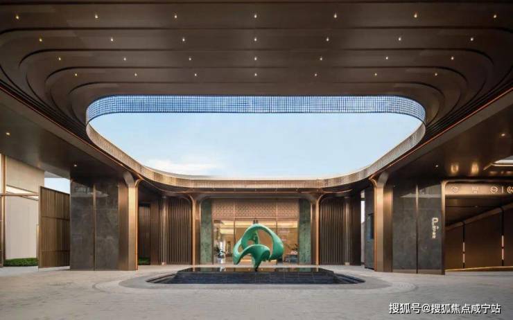 用料上,庭院两侧设计师选用大理石与镂空铝板虚实结合,利用2层柏翠造型铝线条错拼而成,更显精致!归家大堂能给业主更尊贵归家体验的同时,也能作为柏翠业主专属的城市会客厅。