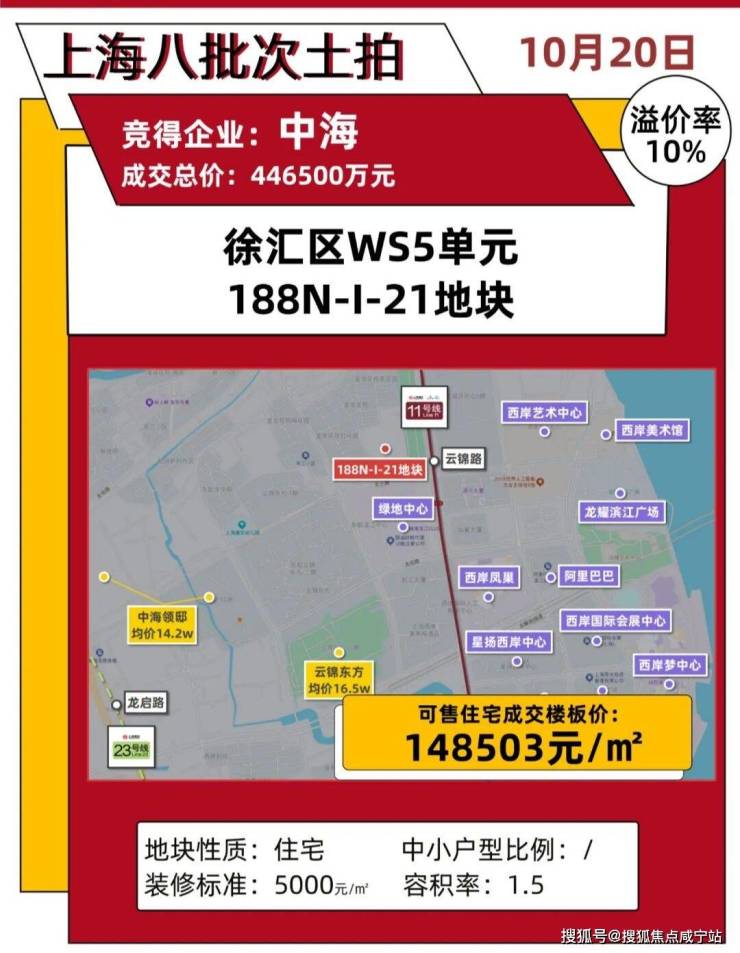 刚过去的上海八批次土拍,徐汇滨江地块以14.85万/㎡的楼板价创下上海滨江史上最高纪录,未来预计售价潮20万/㎡。徐汇华泾综合体地块,预计未来可售住宅价达9-10万/㎡。