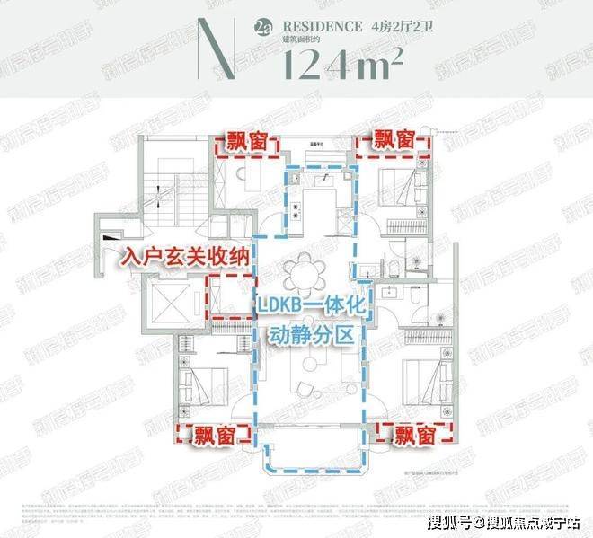爆款改善4房户型!典型的动静分区设计,南北通透、无连廊设计,完全可以满足各类家庭居住,舒适改善的满分选择~