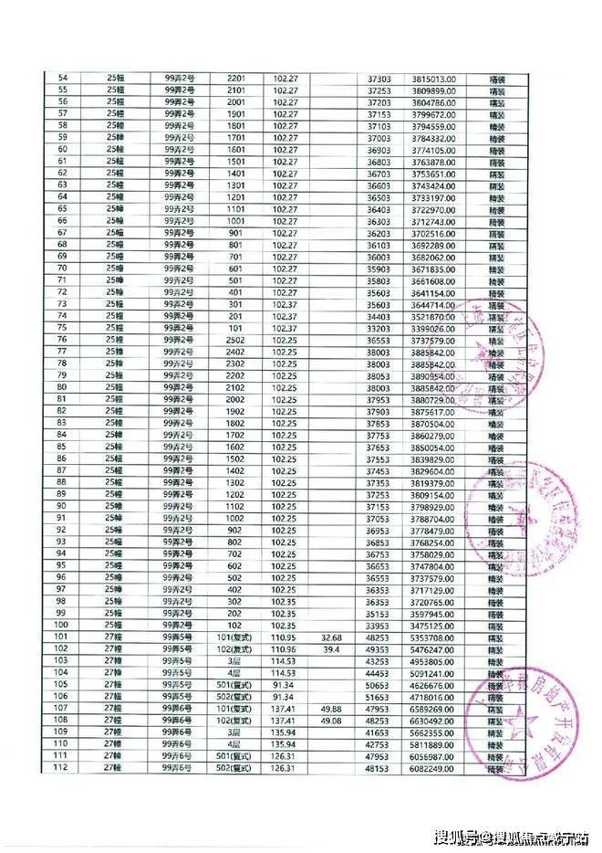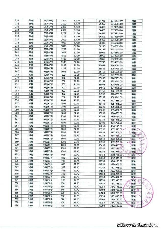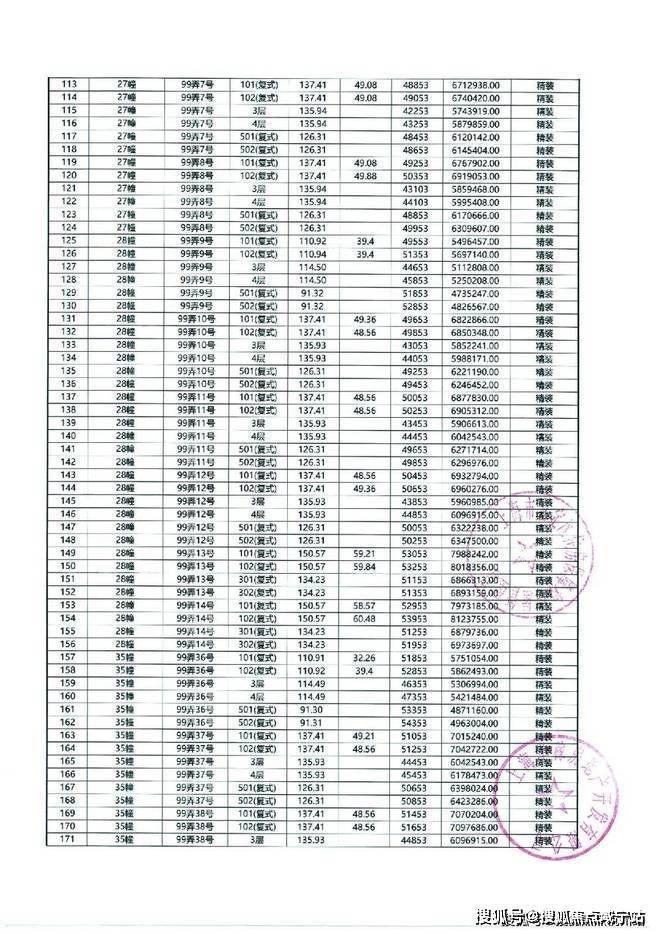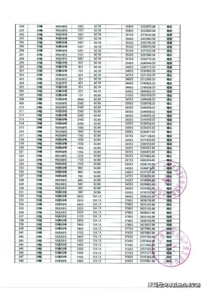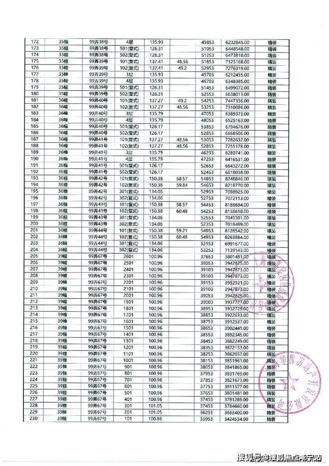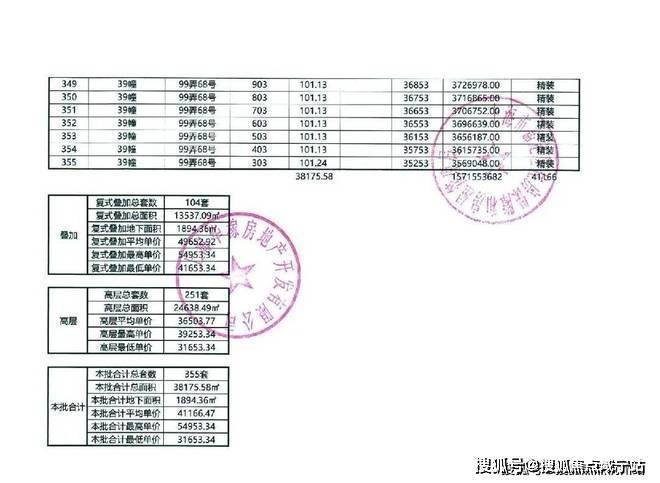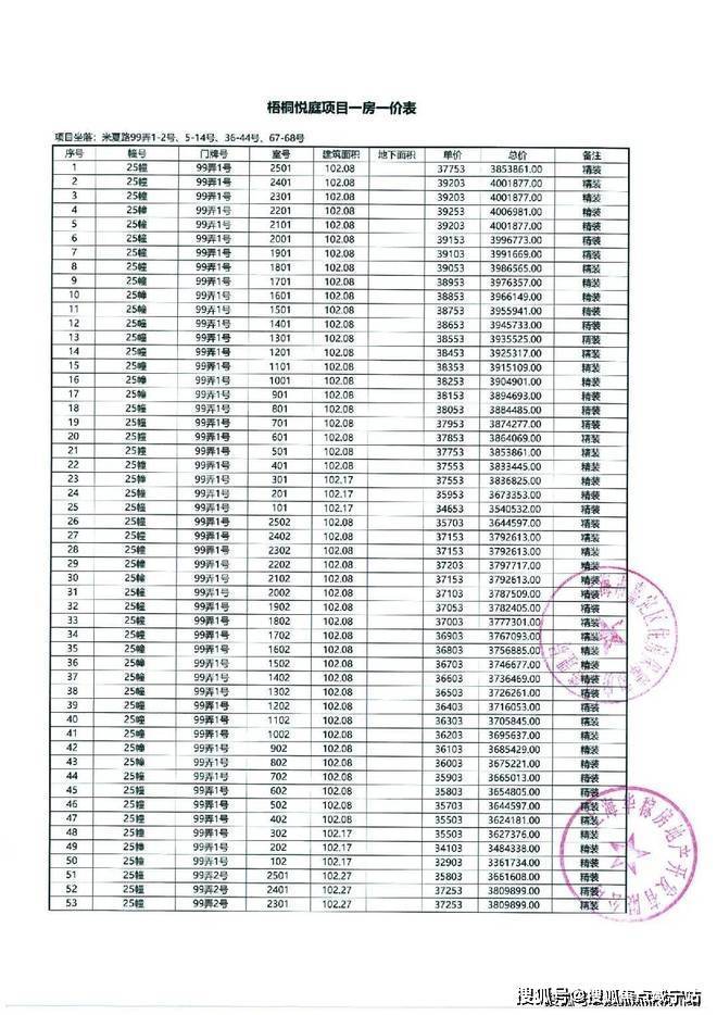 以下为项目最新一房一价表