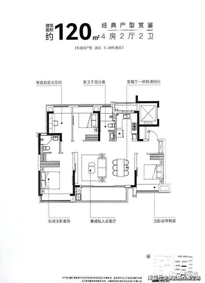 120㎡的4房2厅2卫户型,非常适合二胎家庭或者三代同堂的家庭居住。