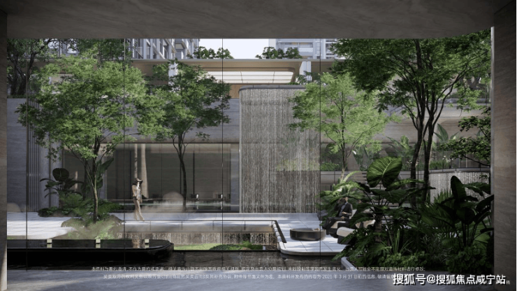 运用室内手法室外化设计构想,将垂直景墙、悬浮观景台与叠水景观立体穿插,形成情随境转的沉浸式体验,自然元素渗透进室内,并与室内空间动态互动。