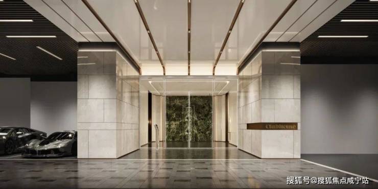 地库入口光厅直接用石材铺地,装点大量奢石金属,满眼奢华。