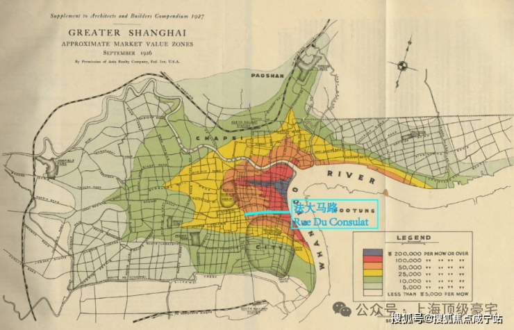 在讨论上海地段的时候,经常用来举例的一张1926年的地价图,如今在讨论嘉里金陵路项目售楼部热线:400-8800-703的时候,重新溯源,金陵路的位置即地图上“法大马路(Rue Du Consulat)”的位置。当时来看,金陵路沿线属于第二梯段的地价,最深色的第一梯段的地价,即外滩、南京东路一线,从当时到现在都主要是商业办公组成。金陵路在住宅口径的角度去讨论,当时可以属于第一梯段。