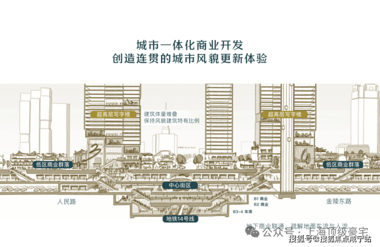引领沪心未来摩登海派、国际化的全新生活方式,地块间地上、地下串联通道,打造业主下楼5分钟生活圈,10分钟消费圈、办公圈。
