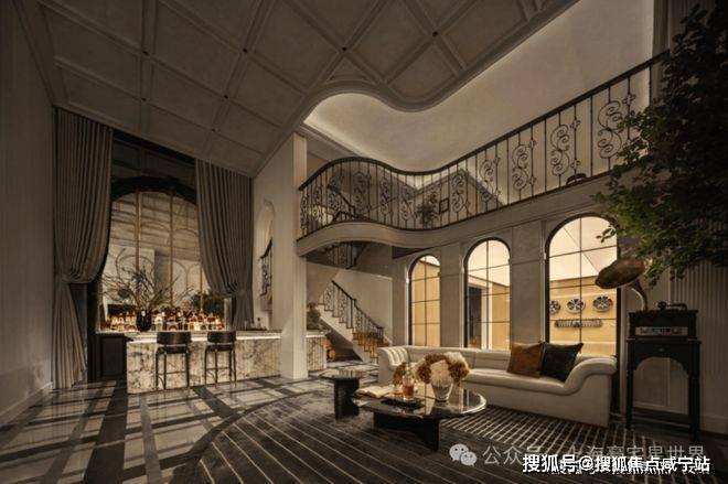 一层的客厅也是拥有大尺度的面宽和进深,将近50㎡的大尺度客厅,可随心放置6-8人餐桌,还可布置9-10人的沙发休息区,在这里举办十几人的party也是绰绰有余。