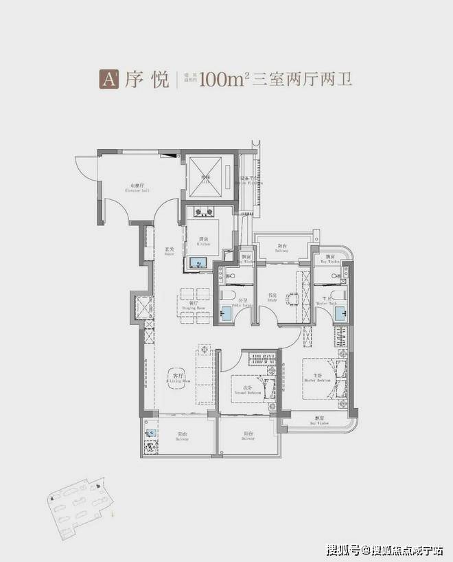 其中建面约115㎡鲲鹏阁三房户型是上海此前未见的全新王炸级产品