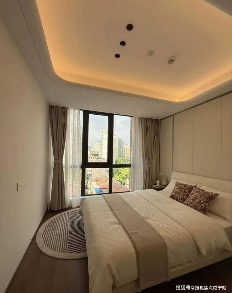 97㎡轻奢两房:餐客一体化设计延展视觉纵深,U型厨房衔接飘窗餐区,主卧套房式布局预留独立衣帽区,小户型亦显阔绰1。