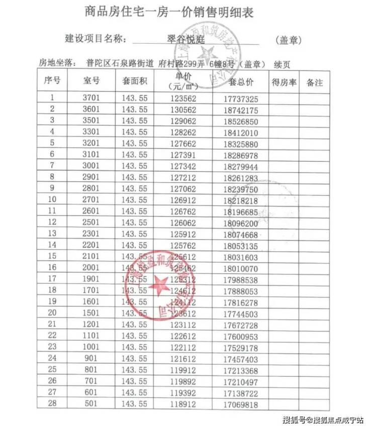 加推户型:已过会及首开户型价格