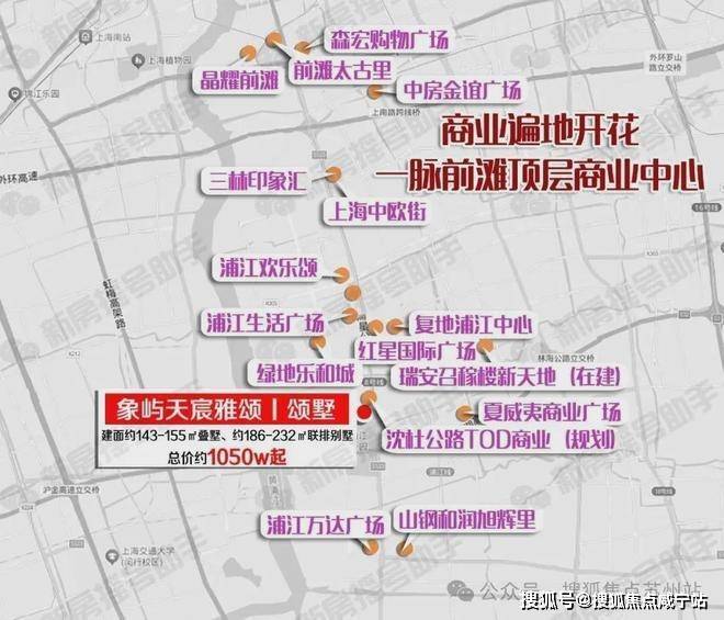 以8号线沈杜公路站为核芯,规划沿沈杜公路东西向串联郊野公园、上海戏剧学院、召稼楼古镇,集聚城市高能服务设施,建设成为新市镇的服务核心及亮点地区。「象屿·天宸雅颂 | 颂墅」以及旁边的商业地块,就是浦江新中心的首发项目,未来将直接享受地区中心建设的时代红利!