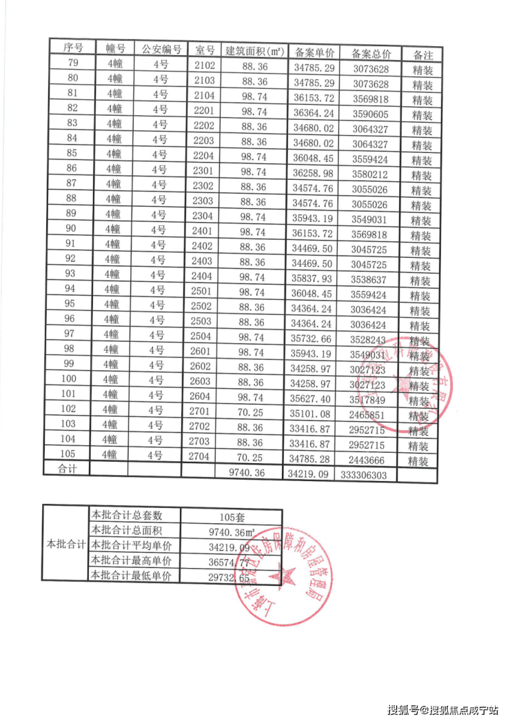 附一房一价表: