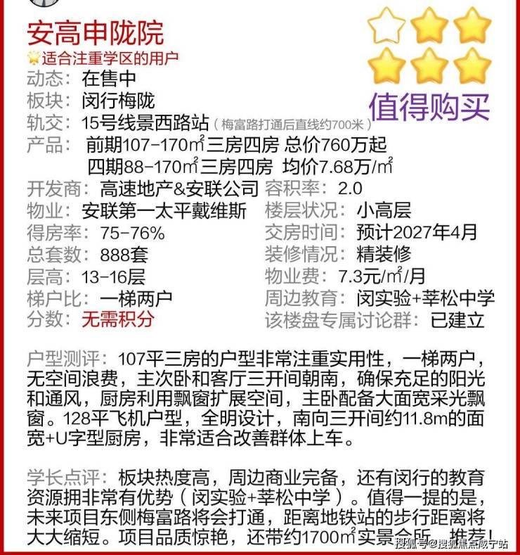 其中「安高申陇院」对客户的诱惑力非常明显。对于其的评价,只想说两个字:抓住!