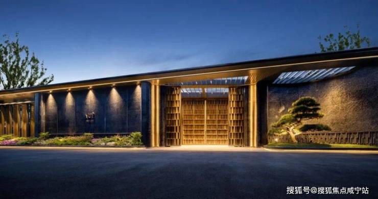 为了给业主一个完美的归家仪式感,项目设计了长约35m宽,约5.1m高奢阔门头,且有名贵黑松迎客。