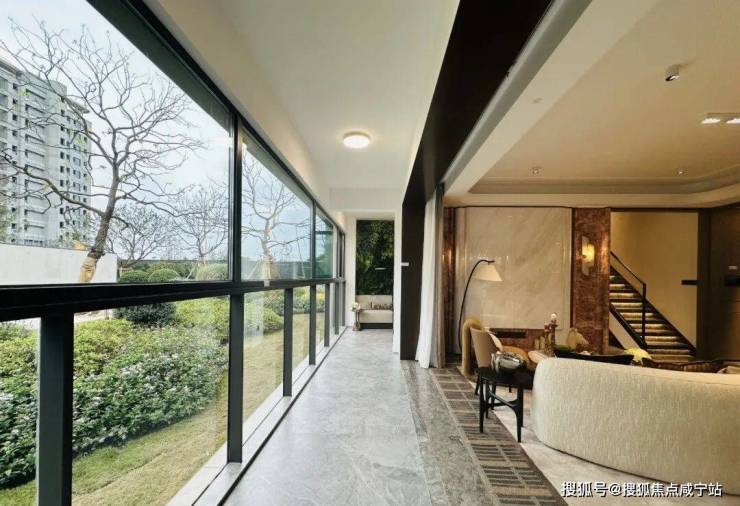 穿过会所,便步入层层叠水、绿意环绕的下沉庭院。