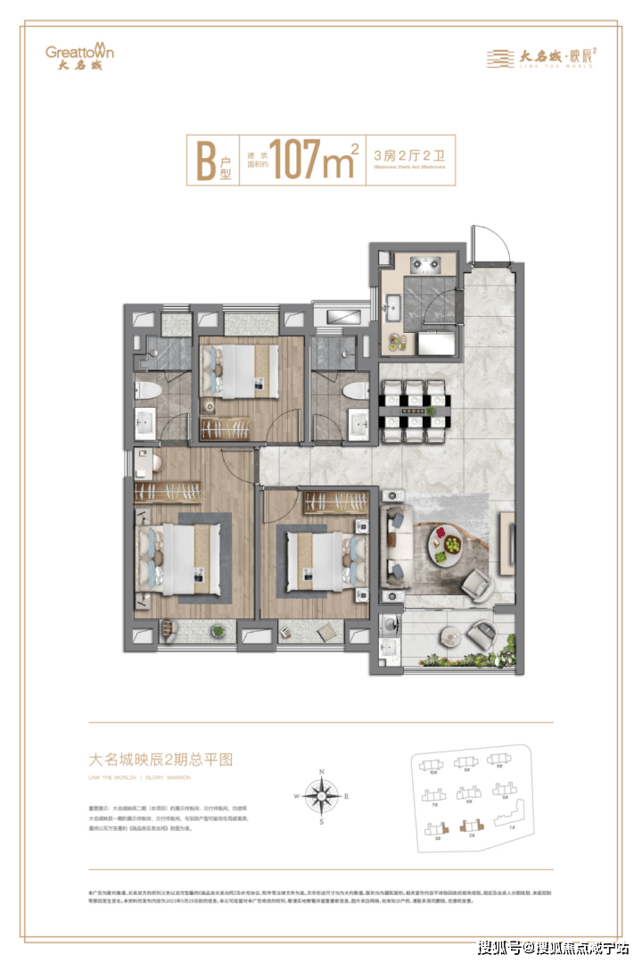 约3米奢阔层高、正三房、大面宽、多飘窗、阔景阳台等设计,盛纳阳光美景,全面提升舒居体验。