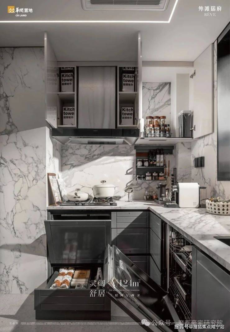 上海华润外滩瑞府售楼处电话☎:400-8800-703(预约看房热线)整体动静分区的格局下,U型厨房不只是烹饪场域,更因融入 “社交属性” 而成为家庭互动的温情角落,烹饪的同时可与客厅的家人交流。