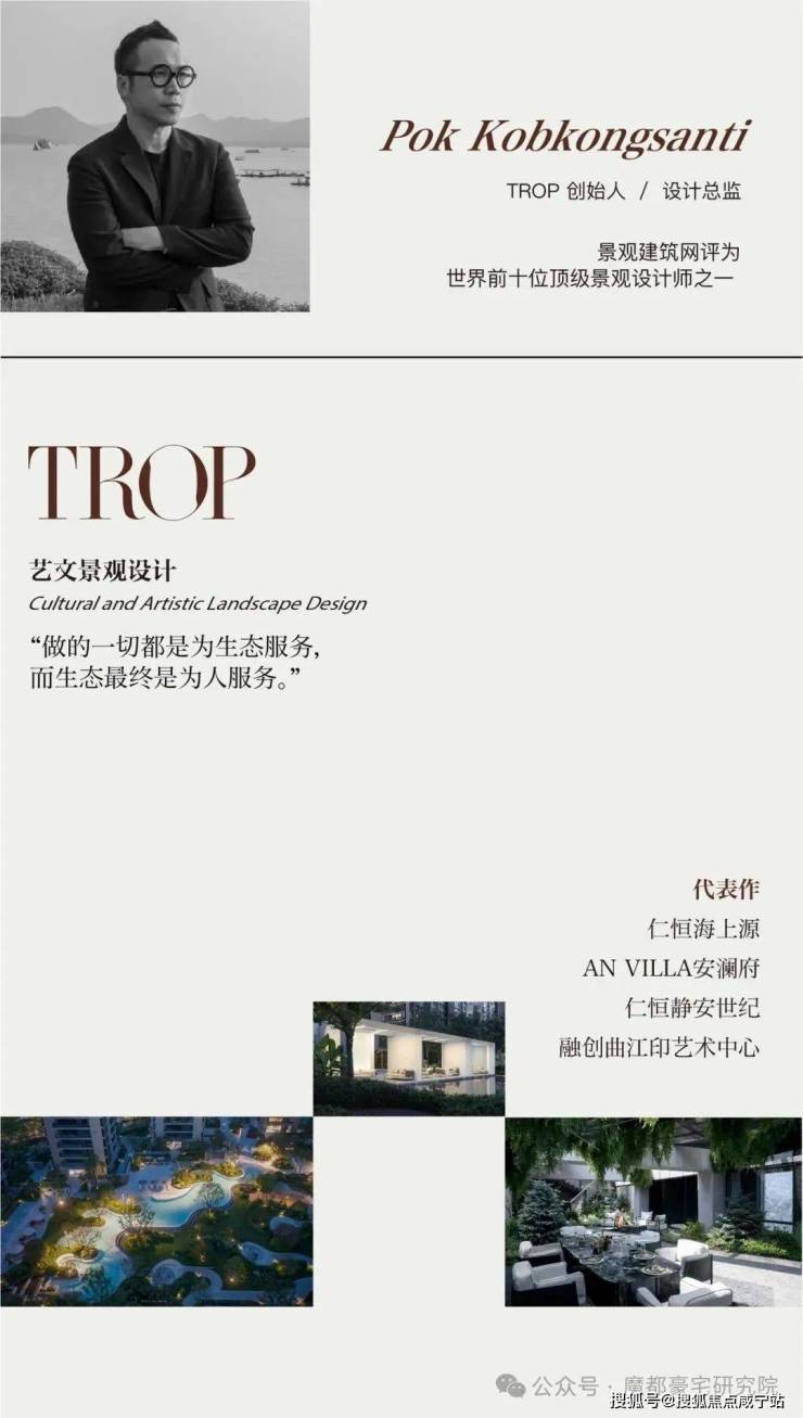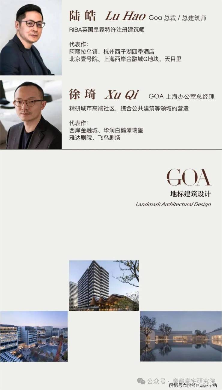 GOA大象设计担纲建筑设计;渡边 智昭 负责会所和架空层设计 ,他是 2023 AD 100 中国最具影响力建筑和室内设计师,代表作翠湖天地、汤臣一品;TROP操刀艺文景观设计; 室内由 W.DESIGN无间设计、 李益中精琢...