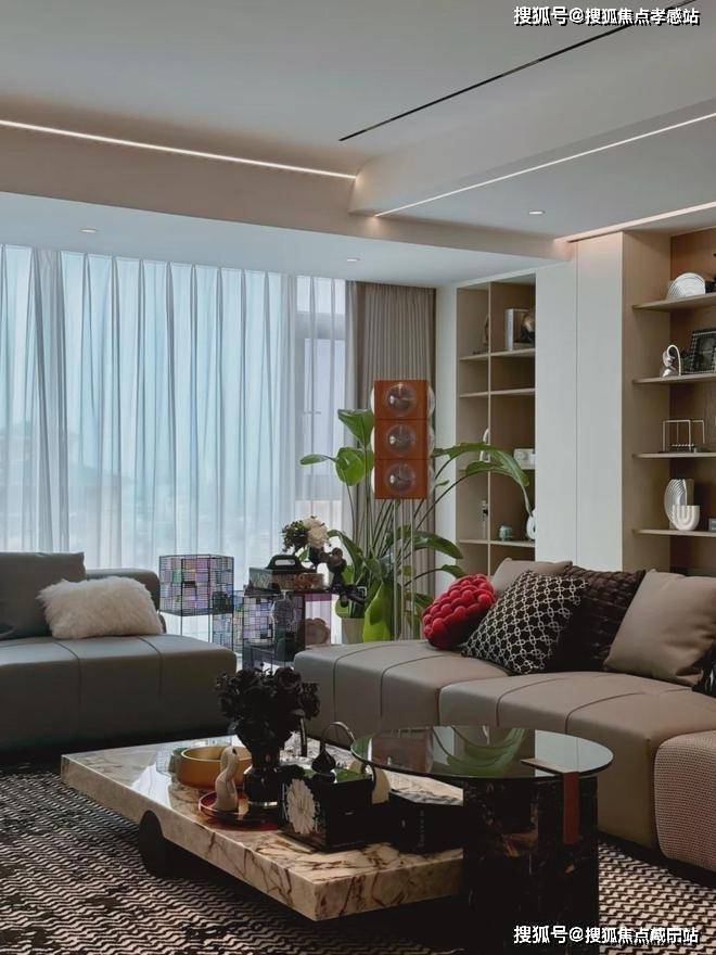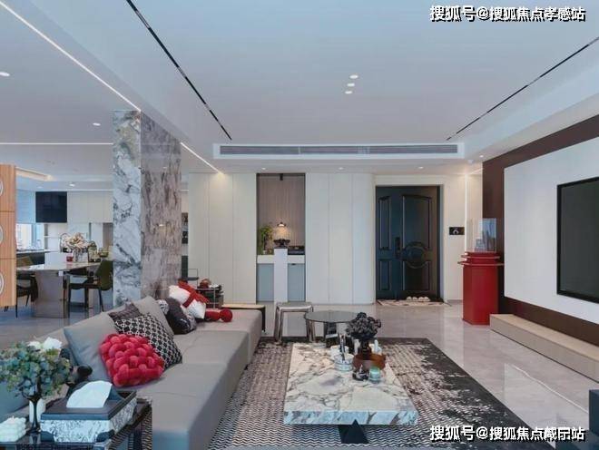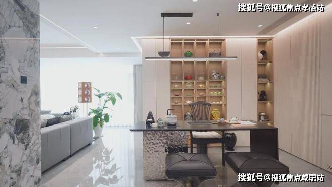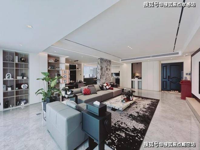 从玄关进入,大平层的既视感扑面而来,硬装上没有多余繁复的装饰,更多的是充满巧思的家具。