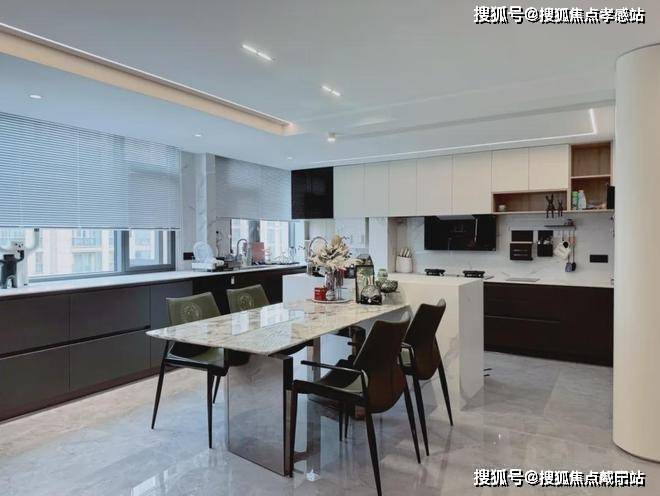 超大的厨房真的是慕了~不管是中厨还是西厨这都有!百叶窗绝对是大厨房最合适的窗帘了,最大限度的保留了光线的充足,也能很好的遮光。
