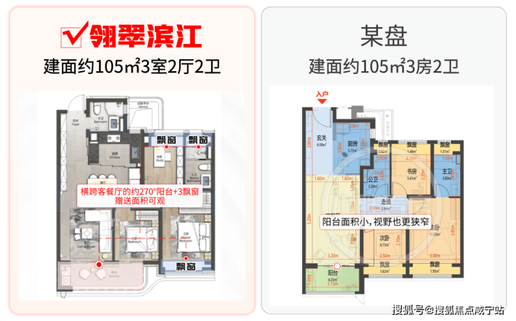 另外一方面,整个阳台拥有约270°的景观面,视野和采光都非常出众。