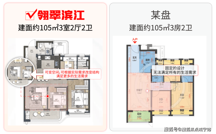 翎翠滨江不同于普通住宅,项目不仅仅可以作为一个宽绰的正3房户型。