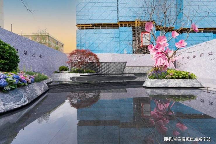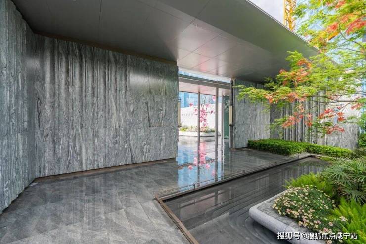 水景旁的特选造型鸡爪槭,由设计师辗转多地精心甄选而来,搭配莫兰迪色系的创新花境,打造出兼具艺术感与松弛感的无风雨归家洄游空间。