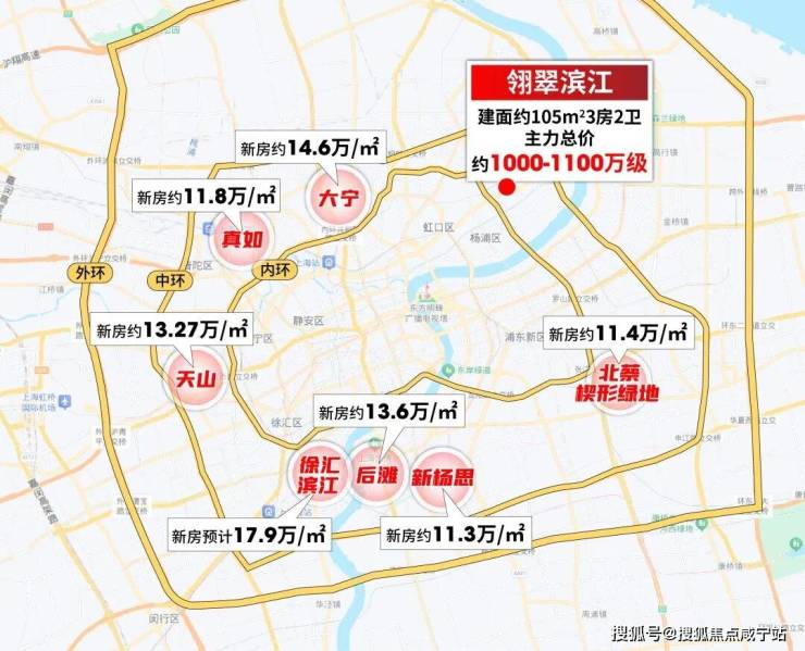 首先,徐汇滨江在售新盘均价17.9万/㎡;后滩项目均价约13.6万/㎡;大宁项目约14.6万/㎡,内中环板块新房单价基本已全线突破12万+/㎡