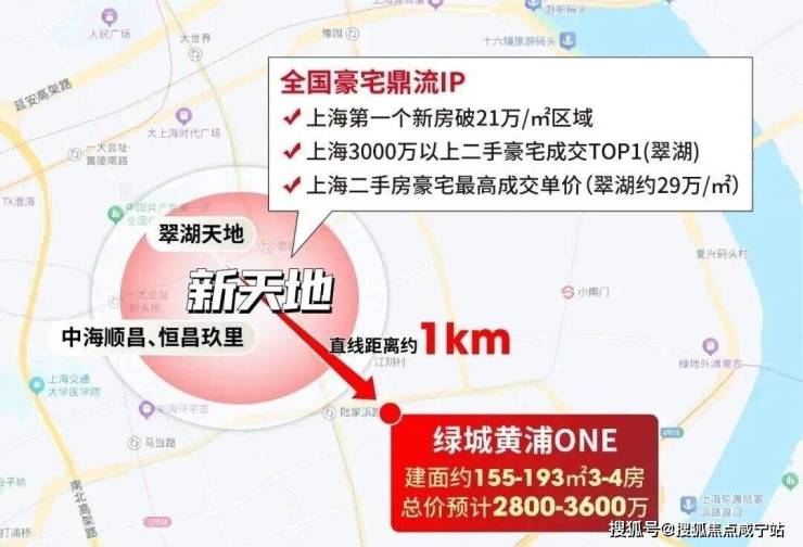 最新消息!收藏黄浦新天地!老西门「绿城·黄浦ONE」持续热销中!少量建面约155-193㎡3-4房;均价17.2万/m²!总价2300-3400万;售楼处线上火热预约中!一步新天地 非标高定奢宅;这将会是一个“以低门槛,撬动上海恒贵地段”的绝佳机遇!