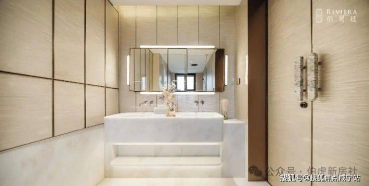 阳光满溢, 尤其主卫罕见实现朝南采光,搭配奢华的双台盆、马桶间、浴缸与淋浴的“四件套”配置,尽显高端居住品质;