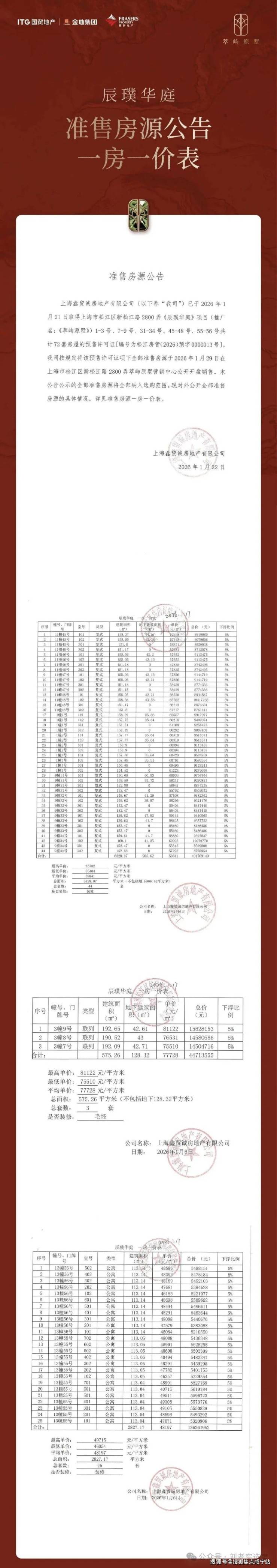 本批次一房一价表如下: