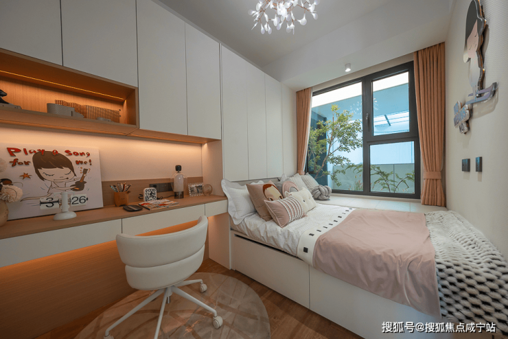 99㎡3房2卫四开间朝南,大横厅的设计,让这个户型有着不亚于宽绰大三房的尺度感和采光面,再加上宽景阳台的设计,这个户型的居住舒适度在同面积段户型中,称得上出类拔萃了。另外,3房2卫5飘窗的设计,保证了主人的私密空间,也保证了室内的收纳空间。样板房实景图如下:
