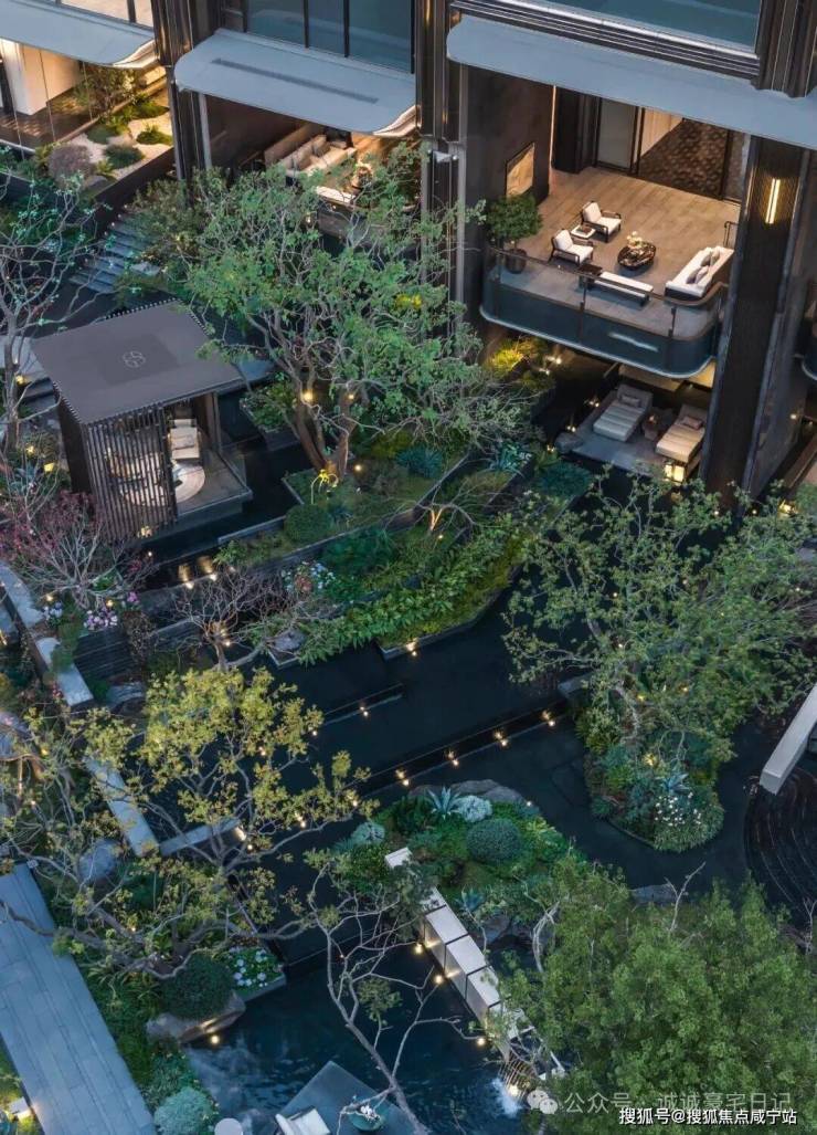 山川溪谷与休憩架空层空间共汇,于庭园深度,打造一处可游、可观、可赏的自然谧境。