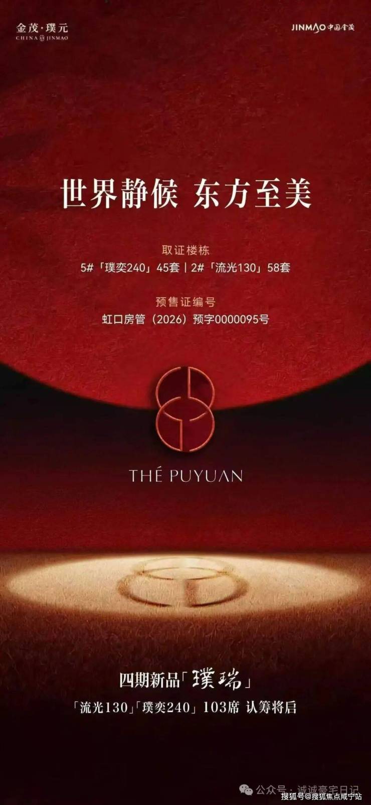 最新信息:金茂璞元四期新品「璞瑞」已取证,4月16日开启认筹!此次即将加推的是最后一栋楼里的「流光130」产品,以及楼王「璞奕240」。为全城高净值人群提供了入主内环内顶豪的最后机会!