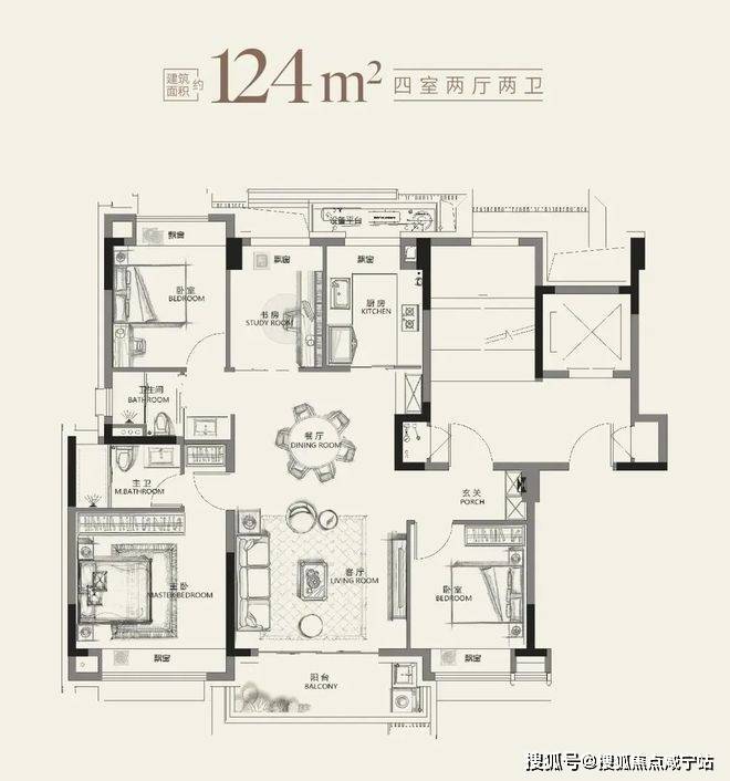 经典平衡对称美学,让建筑庄严不失灵动。大面玻璃、金属格栅、现代铝材搭配,辅以玫瑰金与学府灰色彩,彰显建筑立面的鎏金质感与美学。4大景观中轴、全域花园主题空间,让家生长在公园里。