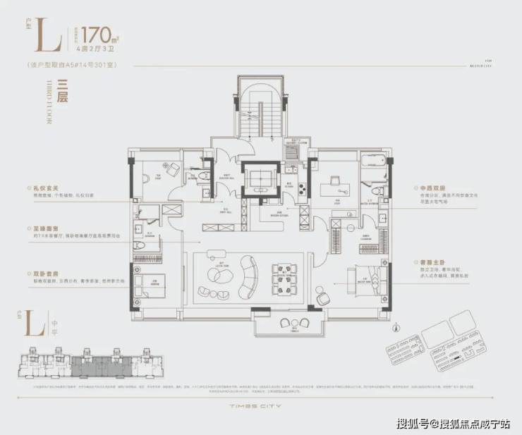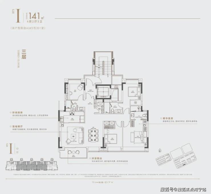 ◐中叠亮点:超大南向面宽,超级大横厅,“墅级”大平层视野。