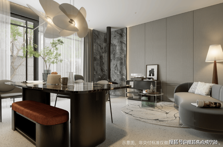 1F 社交主场:约5.6米阔厅连接16㎡私家庭院,前庭后院,都是社交与生活的主场。