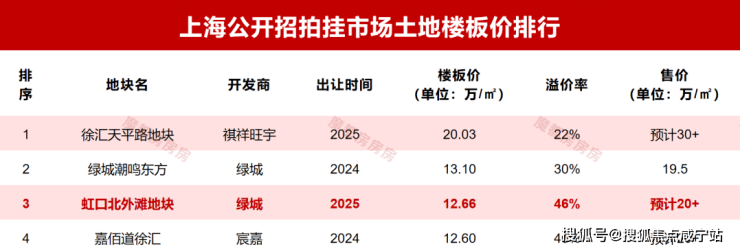 目前,随着土拍价格的持续飙升,同属CAZ的徐汇滨江单价已冲约20万/㎡,今年第六批次土拍的虹口北外滩地块(大平层产品),未来网传单价也要约20万/㎡!