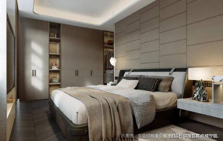 套房包含独立卫浴、男女主人各有衣帽间,动线私密,符合高端改善对主卧“酒店式体验”的需求。
