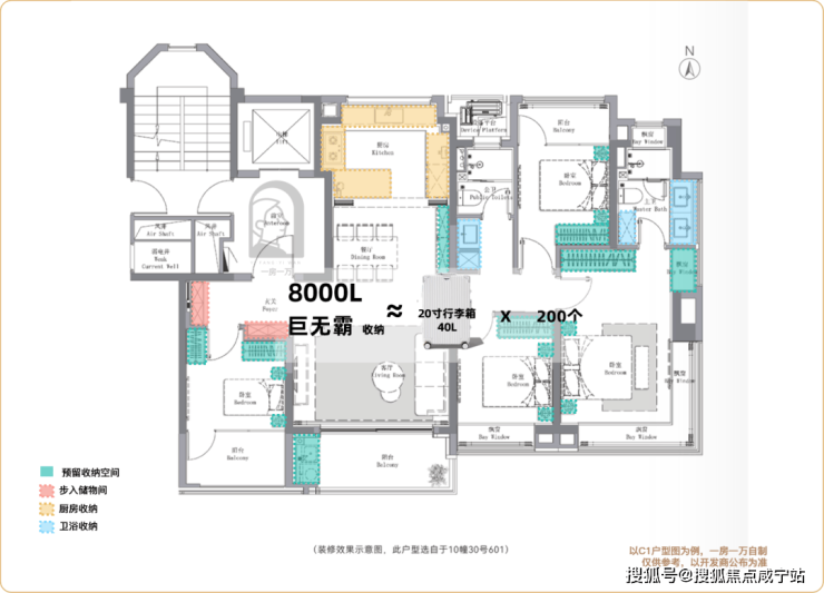 全屋交付收纳量达约8.2m³,约等于205个20寸行李箱(40L)的收纳空间,预留收纳约11m³。