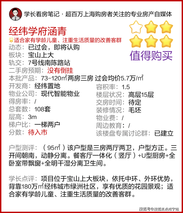 经纬学府涵青重磅消息!宝山经纬学府涵青楼盘评测:最新楼盘资料
