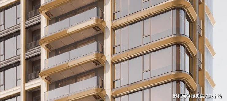 建筑立面,主体以大面积玻璃结合铝板为主,来完成现代建筑的美学表达,经典香槟金色调凸显现代建筑的静谧永恒和高品质感,基座采用浅色石材。