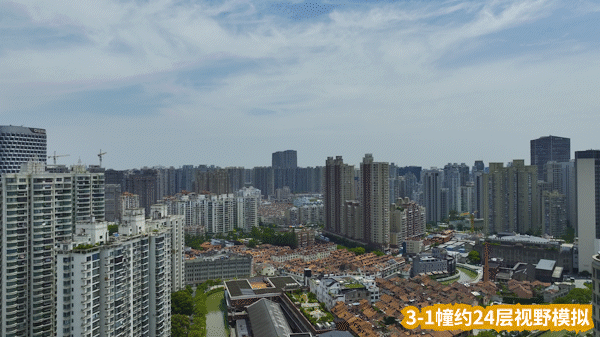 25层左右开始,三件套上半部分基本看全,还能看到部分江景: